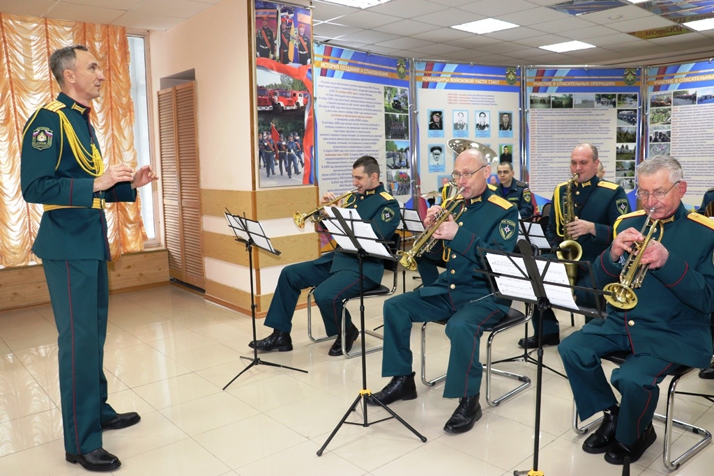 Под исполнение духового оркестра в фойе клуба представительниц прекрасного пола встречали офицеры, вручая им цветы и искренние поздравления с наступающим праздником.
